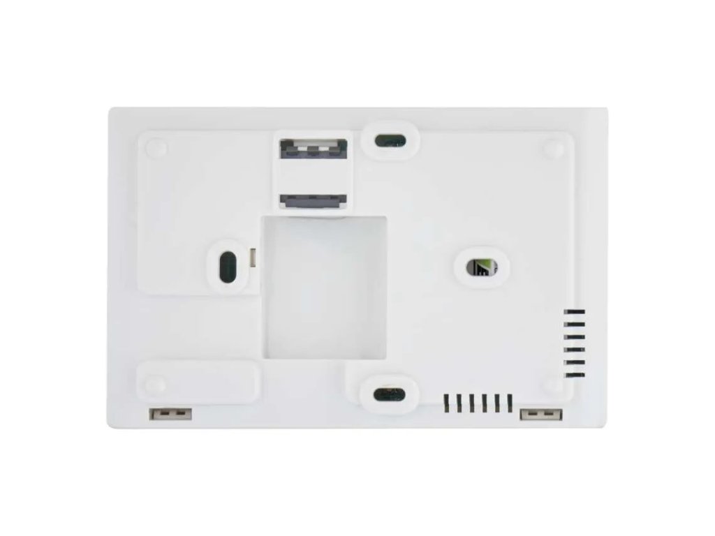 Napájení zajišťují dvě mikrotužkové AAA baterie, které jsou součástí balení. O nutnosti jejich výměny informuje indikátor stavu baterie. V balení najdete také šroubky a hmoždinky pro snadné připevnění na stěnu. Kompaktní rozměry 30 × 120 × 77 mm a bílé provedení zajišťují, že termostat nenaruší vzhled žádného interiéru a stane se nenápadnou, ale užitečnou součástí každodenního pohodlí.