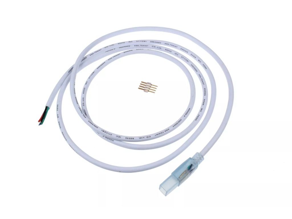Celková délka přípojky je 200 cm. Součástí je i trn, který se nastrčí do LED RGB pásku a na něj se přípojka nasadí.