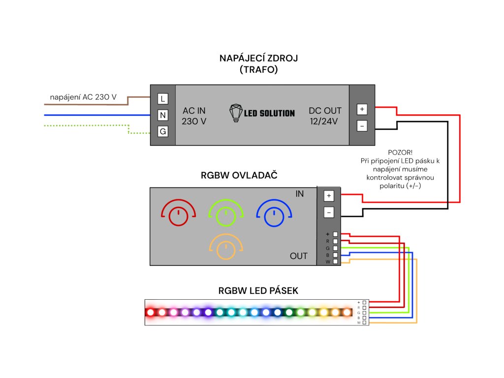 | Barva světla (?) | RGB + teplá bílá, RGB + denní bílá, RGB + studená bílá |
