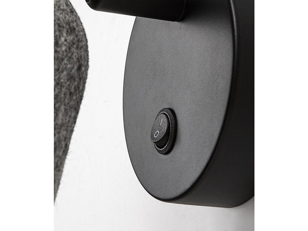 Nástěnné bodové svítidlo Farelia kombinuje kovovou konstrukci v černém provedení s šedým plstěným stínidlem, které dodává světlu měkký a útulný charakter. Použitý plstěný materiál je vyroben z recyklovaných materiálů a přispívá k příjemné atmosféře v interiéru.