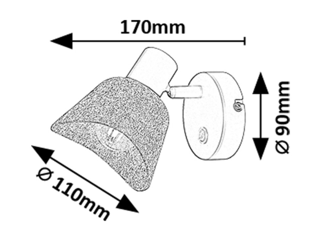 Celková délka svítidla činí přibližně 170 mm, průměr nástěnné základny je 90 mm a průměr stínidla přibližně 110 mm.