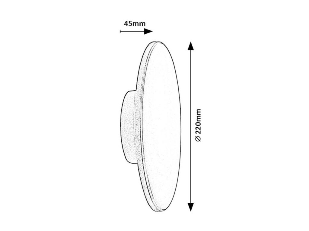 Průměr svítidla je 220 mm a jeho vzdálenost od stěny činí 45 mm. Na tento model se vztahuje prodloužená záruka 5 let.