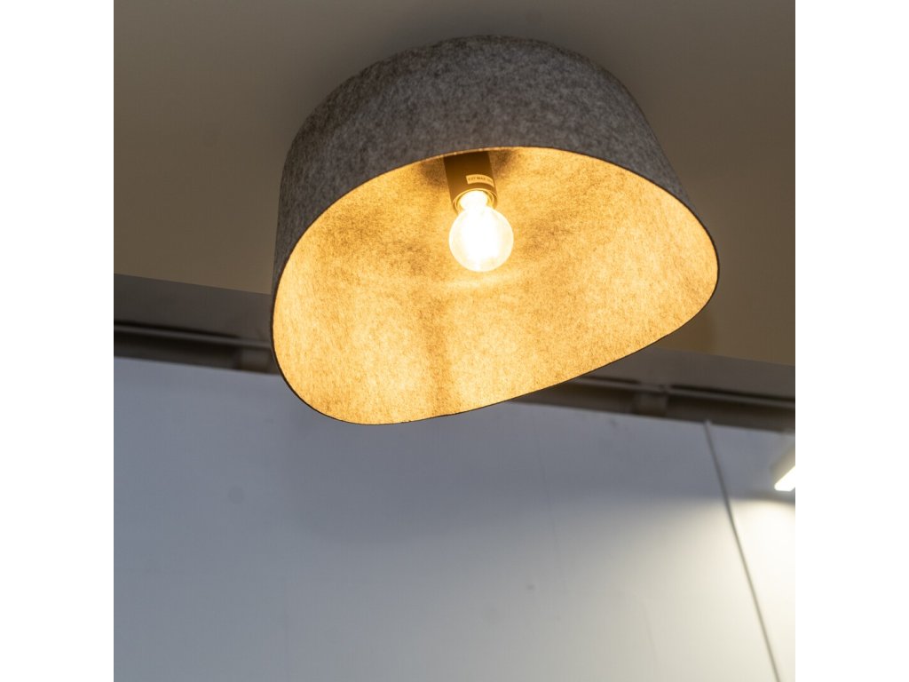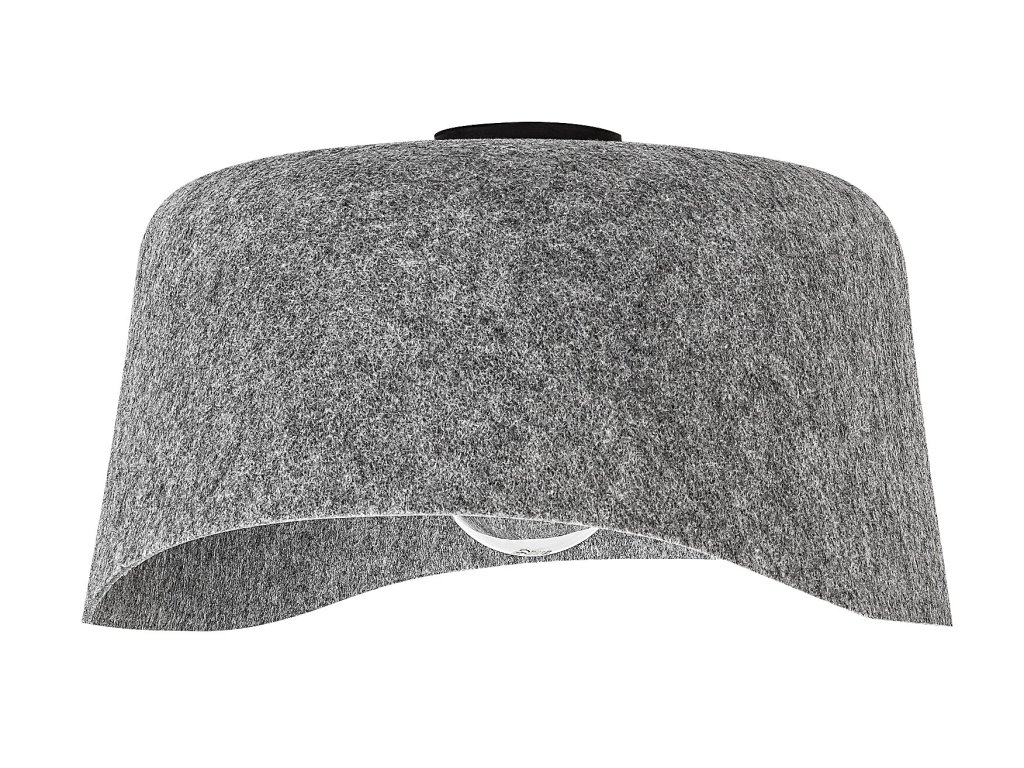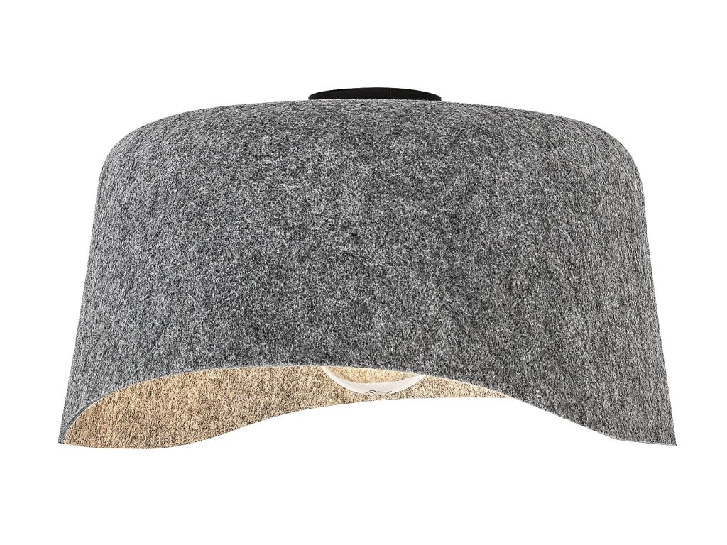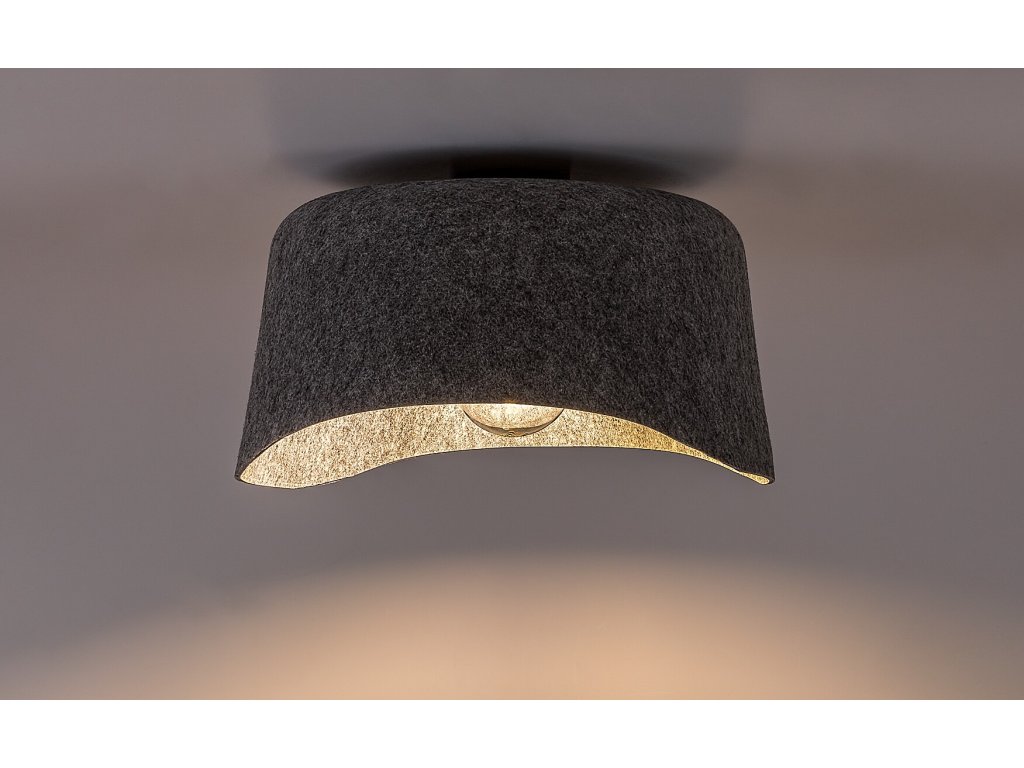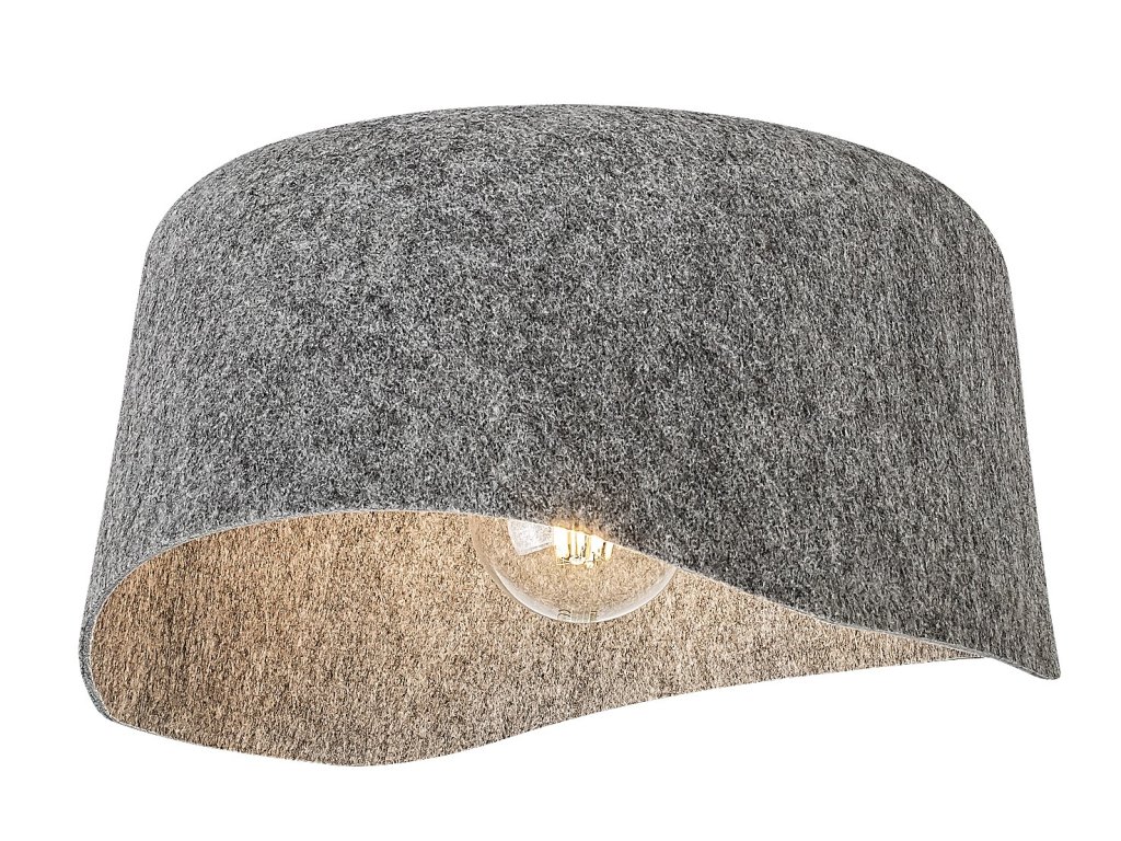 Stropní svítidlo Farelia zaujme originálním tvarem a netradiční kombinací materiálů, díky kterým se stává nejen funkčním, ale i výrazným designovým prvkem interiéru. Dominantou svítidla je šedé filcové stínidlo s jemně vlnitým profilem, které je vyrobeno z ekologického recyklovaného materiálu. Tento přírodní povrch dodává svítidlu měkký, hřejivý charakter a zároveň podtrhuje jeho udržitelný původ. Konstrukce z černého kovu doplňuje celkový vzhled o decentní kontrast a zajišťuje stabilní uchycení ke stropu pomocí malé kulaté montážní základny.