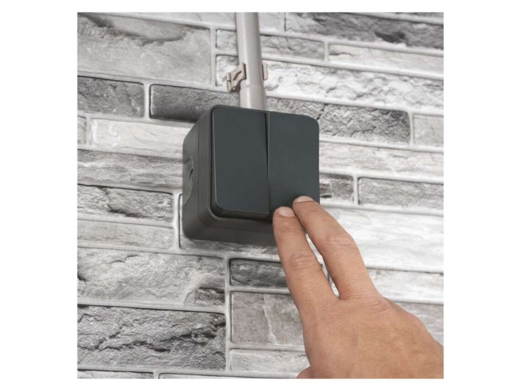 Šedý voděodolný přepínač dvojitý střídavý č. 6+6 IP55