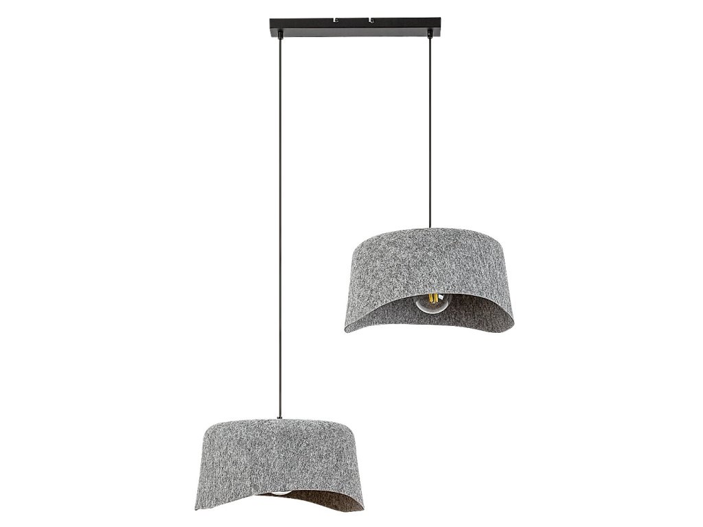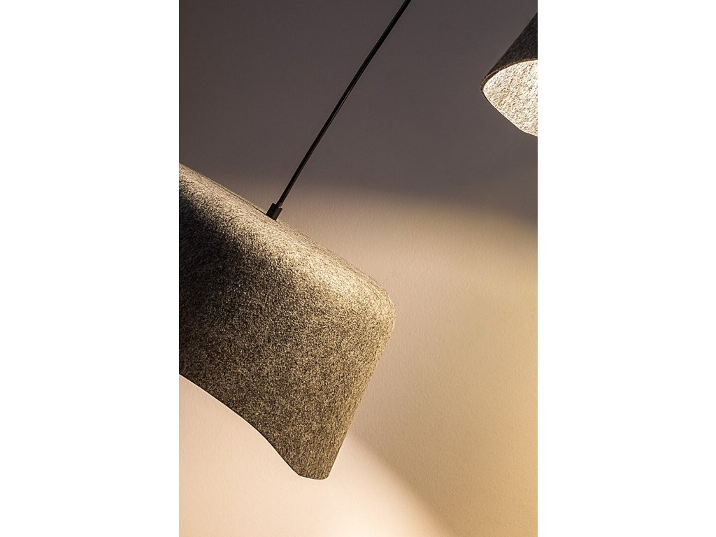 Hlavním designovým prvkem této varianty jsou dvě plstěná stínidla s měkce vlnitým okrajem, zavěšená v různých výškách. Toto asymetrické uspořádání dodává svítidlu lehkou hravost a prostorovou dynamiku, zatímco samotný plstěný materiál přispívá k útulnému dojmu a částečně pomáhá tlumit okolní hluk. Použitý materiál je ekologicky šetrný a vyrobený z recyklovaných surovin, což podtrhuje udržitelný charakter svítidla.