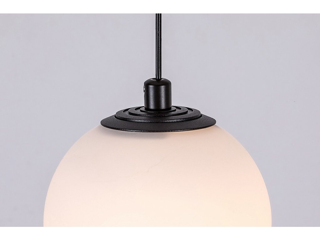 Tělo svítidla je vyrobeno z odolného hliníku v elegantní černé barvě a doplněno kulatým bílým skleněným stínítkem, které zajišťuje kvalitní rozptyl světla a příjemný vizuální efekt. Nabízí světelný tok 360 lm, což je ideální pro jemné nasvícení interiéru, a životnost integrovaného LED světelného zdroje dosahuje až 15 000 hodin, což garantuje spolehlivý provoz a úsporu energie.