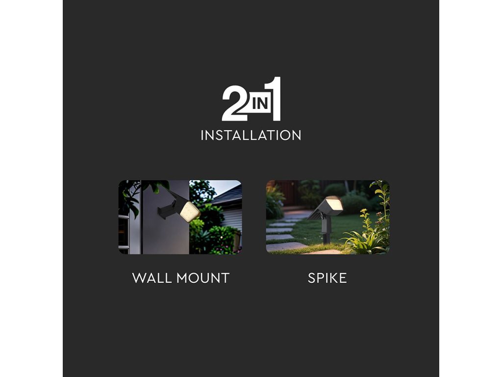 Elegantní solární zahradní svítidlo s praktickou instalací 2v1 nabízí možnost upevnění na zeď nebo zapíchnutí do země pomocí hrotu. Díky monokrystalickému solárnímu panelu o výkonu 1,3 W a výkonné lithium-iontové baterii s kapacitou 1200 mAh poskytuje po plném nabití až 10–12 hodin provozu. Nabíjí se během 6–8 hodin a nevyžaduje žádné kabely ani připojení k síti.