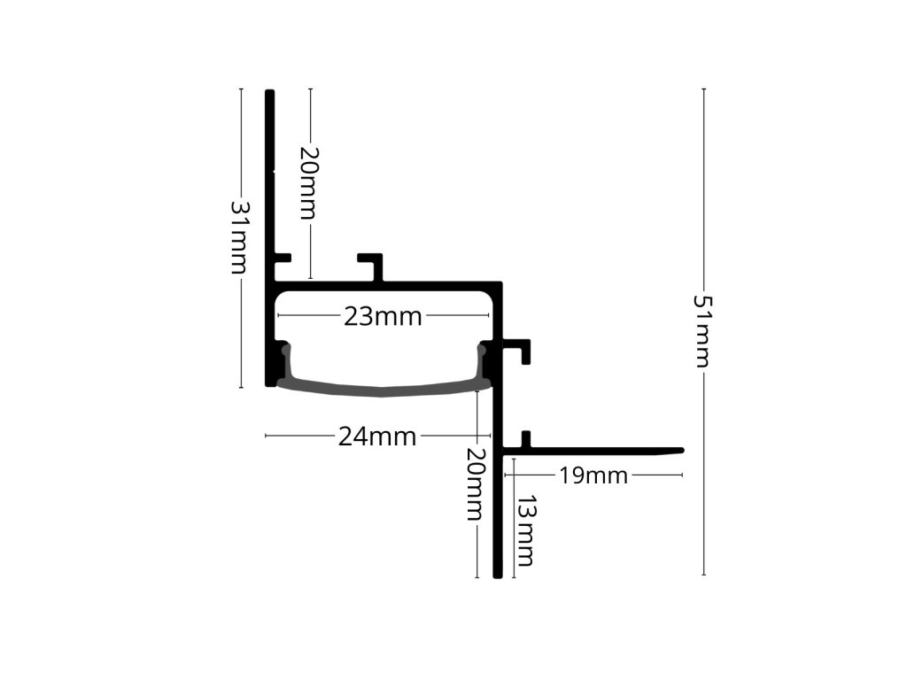 Tento vestavný hliníkový profil neboli lišta slouží nejen jako chladič pro LED pásek, ale také jako designový prvek do Vaší domácnosti nebo jako doplněk nábytku. Profil je navržen pro zapuštěnou instalaci, která dodá interiéru moderní a čistý vzhled.