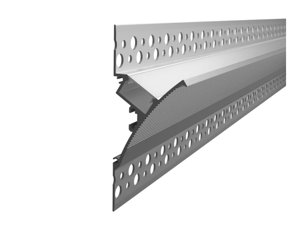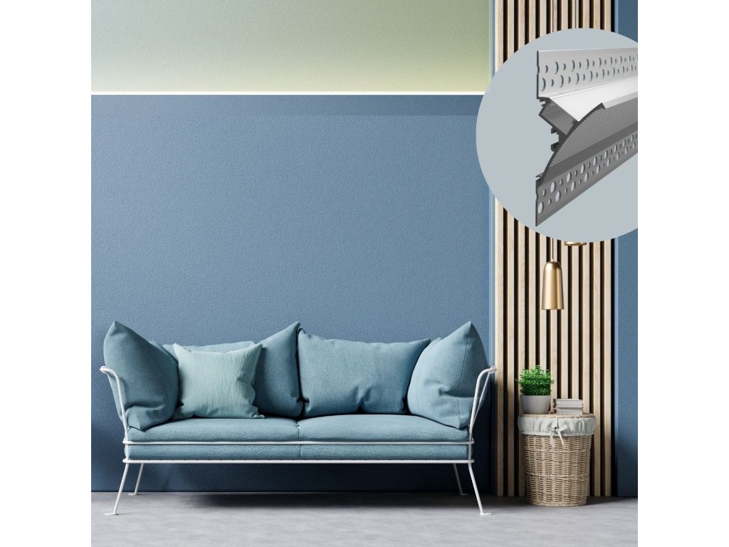Vestavný hliníkový profil do sádrokartonu slouží jako účinný chladič pro LED pásek a zároveň jako nenápadný architektonický prvek, který umožňuje vytvořit čisté a souvislé linie osvětlení. Po instalaci je profil plně integrován do konstrukce stěny nebo stropu, takže v interiéru zůstává viditelný pouze samotný světelný efekt bez rušivých hran nebo viditelného zdroje světla.