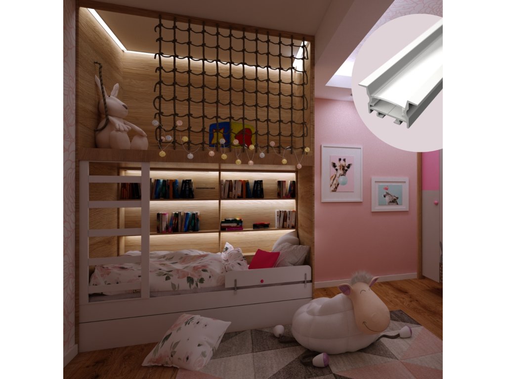 Tento vestavný hliníkový profil neboli lišta slouží nejen jako chladič pro LED pásek, ale také jako designový prvek do Vaší domácnosti nebo jako doplněk nábytku. Profil lze připevnit ke stěně nebo jinému podkladu pomocí držáků, nalepit nebo přišroubovat.