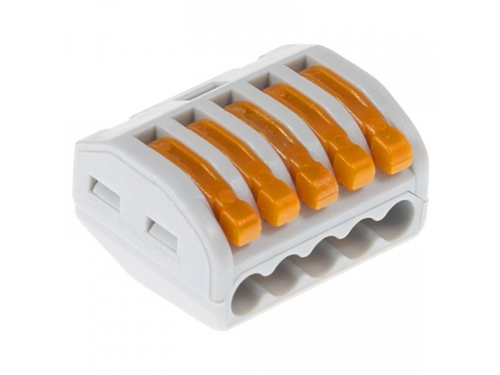 5-vodičové svorky typu WAGO s páčkou pro snadnou montáž a demontáž kabelů.