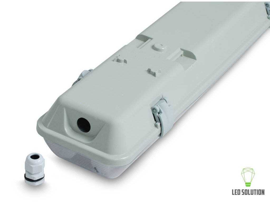 Těleso je určeno pro dvě LED trubice 150 cm a poskytuje voděodolnost i prachotěsnost díky krytí IP65, takže celá souprava nabízí spolehlivé a úsporné osvětlení pro běžné provozy i náročnější podmínky.