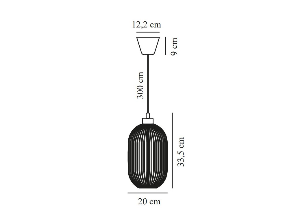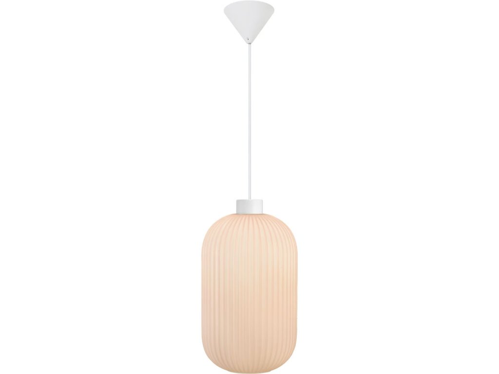 Každý kus je originál – díky tradičnímu řemeslnému zpracování se mohou ve skle objevit jemné vzduchové bublinky nebo nepatrné odchylky v tloušťce, což přispívá k jeho živému a autentickému vzhledu. Stínidlo o průměru 20 cm a výšce 33,5 cm je zavěšeno na textilním kabelu o délce až 300 cm, který umožňuje snadné přizpůsobení výšky zavěšení dle potřeby – ideálně se hodí například nad jídelní stůl, kuchyňský ostrůvek nebo do obývacího pokoje.