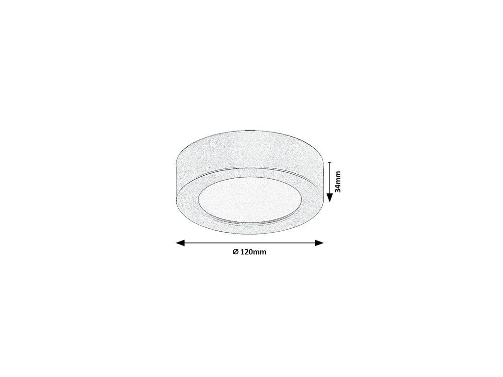 Rozměry svítidla jsou 120 mm v průměru a 34 mm na výšku.