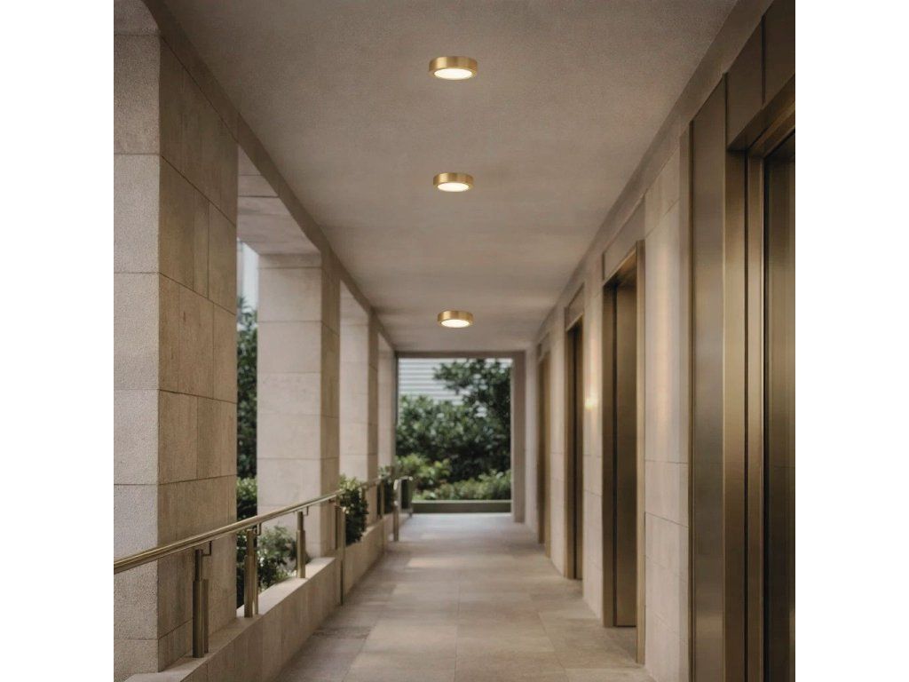 Stropní venkovní svítidlo Shaun Plus zaujme čistým, minimalistickým designem ve zlatém provedení, které působí elegantně a dodává prostoru jemný dekorativní akcent. Skvěle se hodí na fasády i do krytých venkovních prostor, jako jsou terasy, balkony nebo vstupy do domu. Nízký profil působí nenápadně a zároveň prakticky, protože svítidlo nepřekáží a opticky nenarušuje prostor.