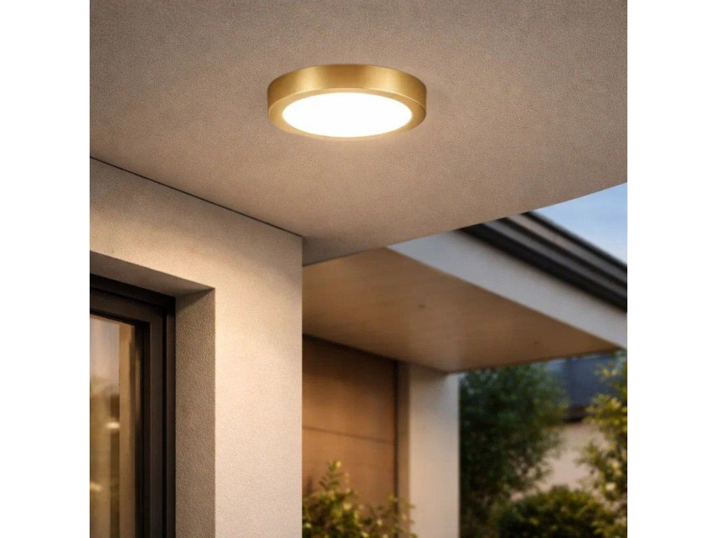 Stropní venkovní svítidlo Shaun Plus zaujme čistým, minimalistickým designem ve zlatém provedení, které působí elegantně a dodává prostoru jemný dekorativní akcent. Skvěle se hodí na fasády i do krytých venkovních prostor, jako jsou terasy, balkony nebo vstupy do domu. Nízký profil působí nenápadně a zároveň prakticky, protože svítidlo nepřekáží a opticky nenarušuje prostor.
